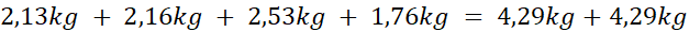 Dodaj wagi czworaczków. Pamiętaj, że przecinki muszą być w tej samej linii.