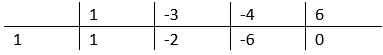 Narysuj tabelę. W pierwszym wierszu wpisz wszystkie kolejne współczynniki uporządkowanego wielomianu. W lewym dolnym rogu najniższego wiersza tabelki wpisz liczbę, która jest miejscem zerowym dwumianu, czyli 1. Przepisz pierwszy współczynniku bez zmian do dolnego wiersza. Tak otrzymaną liczbę 1 pomnóż przez liczbę 1, która jest miejscem zerowym dwumianu, następnie dodaj liczbę -3. Wynik będący liczbą -2 wpisz do kolejnej komórki dolnego wiersza w schemacie Hornera. Podobnie postępuj z kolejnymi współczynnikami wielomianu.