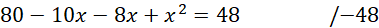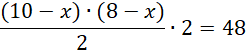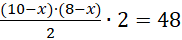 W tym zadaniu musisz obliczyć jakich wartości x zacieniowany obszarstanowi co najmniej 40% powierzchni prostokąta o bokach 8 i 10.