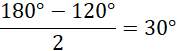 Zauważ, że jeśli kąt między ramionami trójkąta równoramiennego wynosi 120 stopni to kąt przy podstawie wynosi: