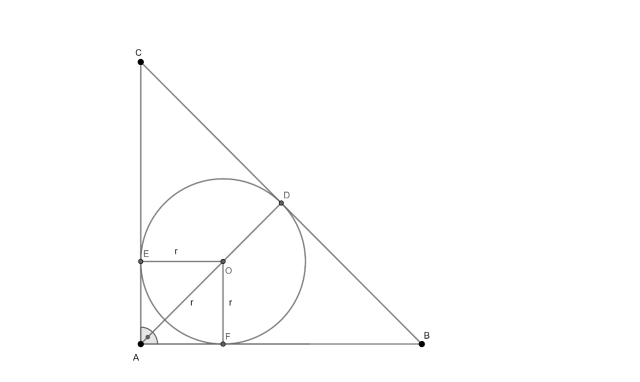 Zauważ, że wysokość w tym trójkącie jest równa sumie długości promienia okręgu wpisanego i odcinka AO: