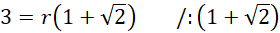 Następnie zwróć uwagę, że odcinek AO jest równy przekątnej kwadratu o boku r, stąd: