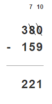Aby odjąć dwie liczby sposobem pisemnym, w każdej kolumnie odejmij cyfrę odjemnika od cyfry odjemnej. Pamiętaj, że odjemna jest zawsze nad odjemnikiem. Jeśli w jednej z kolumn cyfra odjemnika jest większa od cyfry odjemnej, to dodaj do cyfry odjemnej 10 i zmniejsz cyfrę po lewej o jeden.