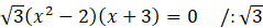 Zauważ, że równość składa się z iloczynu dwóch równań. Będzie ono zerem, jeśli chociaż jeden z nawiasów będzie zerowy. Przyrównaj więc każdy z nich do zera.