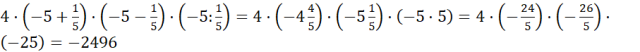 Oblicz czterokrotność iloczynu sumy, różnicy oraz ilorazu liczb -5 i