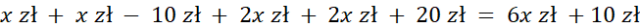 W tym zadaniu musisz obliczyć sumaryczną kwotę kieszonkowych dziewczynek. Agata otrzymuje x zł, Basia – o 10 zł mniej, Ewelina zaś dwa razy więcej od Agaty, a Agnieszka – 20 zł więcej od Eweliny.