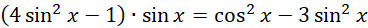 Najpierw po lewej stronie równania przemnóż nawias przez sinx, a po prawej stronie zamień