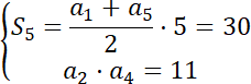 Oblicz, ile co najmniej początkowych wyrazów rosnącego ciągu arytmetycznego należy dodać, by uzyskać sumę większą od 100? Wiadomo, że suma pięciu początkowych wyrazów jest równa 30, a iloczyn czwartego i drugiego wyrazu jest równy 11.