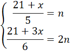 W tym zadaniu wyznacz liczbę x, jeżeli średnia pierwszego zestawu danych wynosi n, a średnia drugiego zestawu 2n.