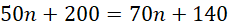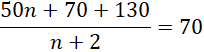 Do średniej 50n należy dodać 130 i 70, a następnie podzielić przez n + 2, ponieważ ilość liczb zwiększyła się o 2.