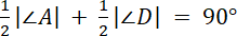 . Punkt przecięcia dwusiecznych i dwa wierzchołki A, D tworzą trójkąt AED, a suma kątów w trójkącie wynosi zawsze