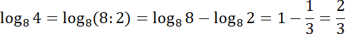 Liczbę 4 zapisz w postaci ilorazu liczb 8 i 2. Następnie skorzystaj z tego, że iloraz liczb logarytmowanych możesz zamienić na różnicę logarytmów o takich samych podstawach:
