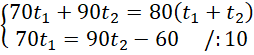 Wyznacz długość całej trasy, jeśli samochód przejechał pierwszą część trasy za średnią prędkością 70 km/h, drugą, dłuższą o 60 km, pokonał ze średnią prędkością 90 km/h, a jego średnia prędkość na całej trasie była równa 80 km/h.
