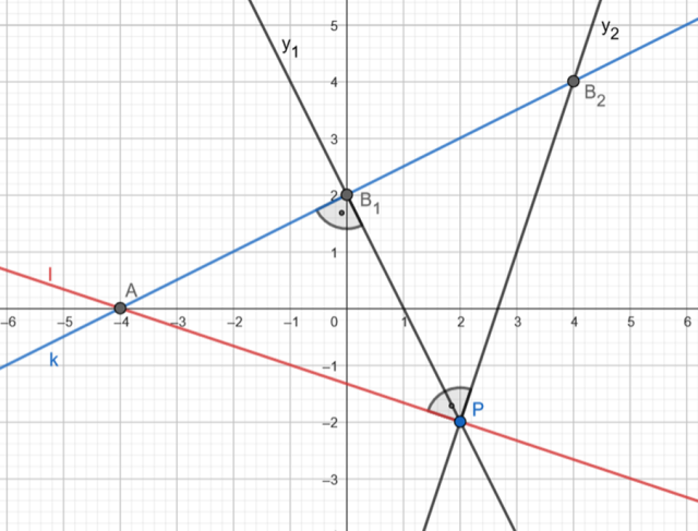 Znajdź równanie prostej l. Współrzędne punktów A i P podstaw pod równanie kierunkowe funkcji liniowej: