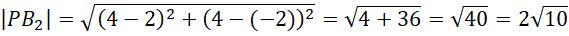 W podobny sposób znajdź równanie prostej przechodzącej przez punkty P i B2 i oblicz pole trójkąta AB2P.