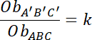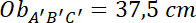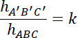 . Zapisz te proporcje z szukanym obwodem i wysokością trójkąta A’B’C’ i je wyznacz.