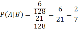 Wypisz wszystkie zdarzenia sprzyjające podanym oraz oblicz ich ilość oraz ilość wszystkich zdarzeń elementarnych. Następnie skorzystaj ze wzoru na prawdopodobieństwo zdarzenia A pod warunkiem, że zaszło zdarzenie B: