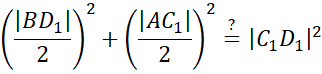 Następnie sprawdź, czy połowy przekątnych prostopadłościanu i dłuższa krawędź podstawy spełniają twierdzenie Pitagorasa.