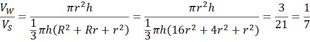 Ustal, jaką część objętości stożka ściętego stanowi objętość walca, jeśli w stożek ścięty, w którym stosunek promieni podstaw jest równy 1:4, wpisano walec jak na rysunku.