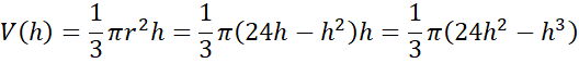 Z twierdzenia Pitagorasa wyznacz promień podstawy stożka, a następnie określ dziedzinę – wysokość i promień muszą być dodatnie. Następie oblicz jego objętość – zauważ, że powstanie funkcja zmiennej