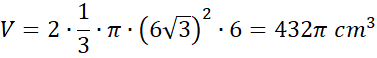 Wyznacz objętość bryły, która powstała przez obrót trójkąta równobocznego o boku 12 cm wokół jednego z boków.