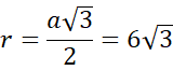 Wykonaj rysunek pomocniczy. Zauważ, że wysokość powstałej bryły jest równa bokowi trójkąta, a promień ma długość wysokości trójkąta równobocznego.