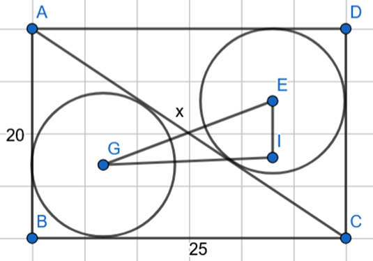 Wyznacz odległość między środkami okręgów wpisanych w trójkąty ABC i CDA, jeśli boki prostokąta ABCD mają długości