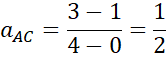 Następnie skorzystaj ze wzoru na współczynnik kierunkowy prostej przechodzącej przez punkty A i B: