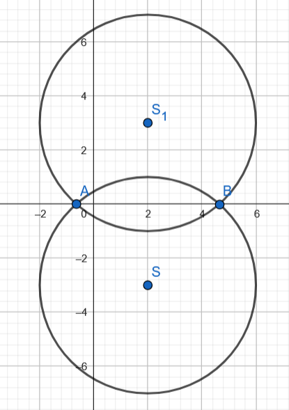 . Okręgi o środkach S i S1 przecinają się w punktach A i B.