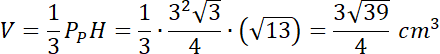 Wyznacz objętość ostrosłupa prawidłowego trójkątnego, w którymsuma długości krawędzi wynosi 21, a jego wysokość jest równa