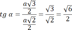 Z podanej zależności wyznacz wysokość ściany bocznej, a następnie z twierdzenia Pitagorasa wysokość ostrosłupa. Na koniec zauważ, że wysokość ostrosłupa, połowa przekątnej podstawy oraz krawędź boczna tworzą trójkąt prostokątny i na tej podstawie wyznacz tangens podanego kąta.