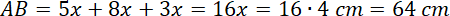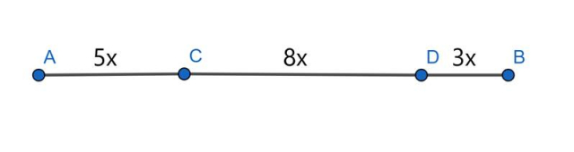Oznacz AC jako 5x, CD jako 8x, DB jako 3x.