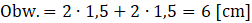 Najpierw należy wyliczyć obwód podanego prostokąta, pamiętając o tym aby zamienić milimetry na centymetry: