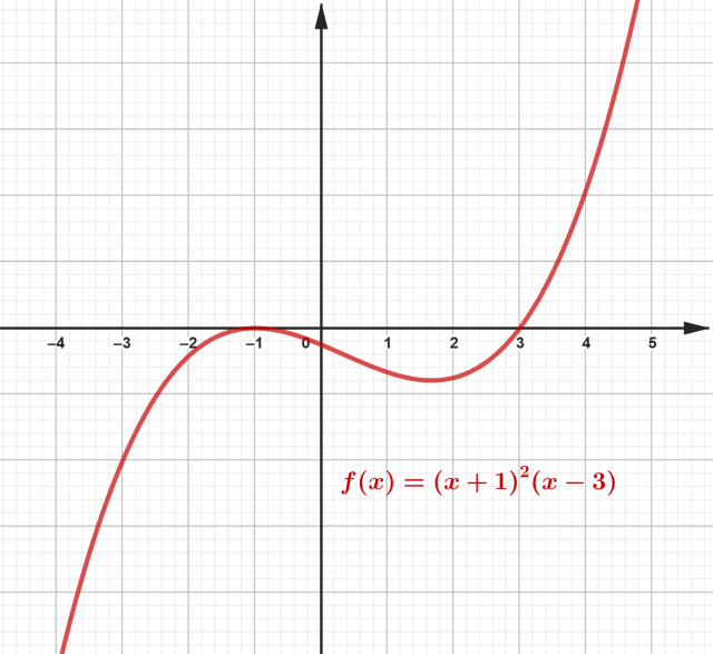 3. Prowadź funkcję tak, aby przecinała oś w miejscach, w których posiada ona pierwiastki, pamiętając, że gdy krotność pierwiastki jest nieparzysta, to przecinamy oś, a gdy jest parzysta – odbijamy wykres od osi.