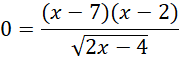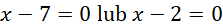 Liczba 2 nie należy do dziedziny, więc jedynym miejscem zerowym tej funkcji jest 7.