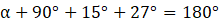 Punkty A, B, C są współliniowe, czyli tworzą kąt półpełny. Suma wszystkich kątów jest równa 180°.