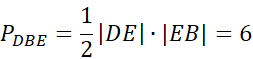 Znajdź trójkąty podobne i oblicz ich skalę podobieństwa. Na podstawie skali znajdź długość boku DE. Ze wzoru na pole znajdź wysokość trójkąta. Oblicz długość boku DB z twierdzenia Pitagorasa.