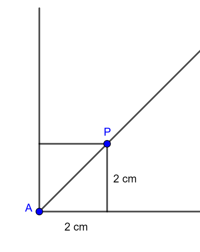 Wykaż, jaka jest odległość punktu P, należącego do dwusiecznej kąta prostego, od wierzchołka tego kąta, jeśli punkt P leży w odległości 2 cm od obu ramion kąta.
