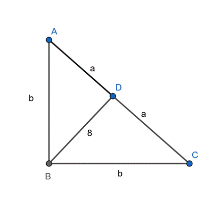 Wykonaj rysunek i podpisz długości boków. Wiadomo, że obwód trójkąta wynosi 32, czyli 2a + 2b = 32, z czego wynika, że a + b = 16. Wyznacz z tego równania „a” i skorzystaj z twierdzenia Pitagorasa, aby obliczyć „b”.