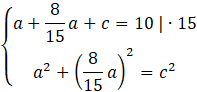 Wyznacz długości boków trójkąta prostokątnego, jeśli jego obwód wynosi 10 cm, a stosunek długości dwóch krótszych boków jest równy 8:15.