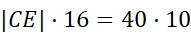 W kole poprowadzono cięciwy AB i CD, które przecięły się w punkcie E. Pole trójkąta AEC jest o 210 cm² większe od pola trójkąta EDB. Wiedząc, że |AE| = 40 cm, |ED| = 16 cm oraz |BE| = 10 cm. W tym zadaniu musisz obliczyć długość odcinka CE.