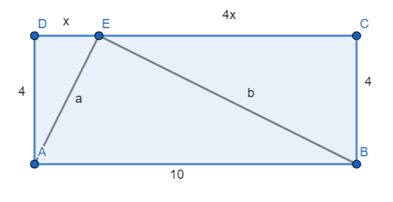 Czy trójkąt ABE jest prostokątny? Odpowiedź uzasadnij, mając dane, że w prostokącie ABCD bok AB ma długość 10 cm, a bok BC ma 4 cm, a na boku DC obrano punkt E tak, że stosunek długości odcinków DE do EC wynosi 1:4.