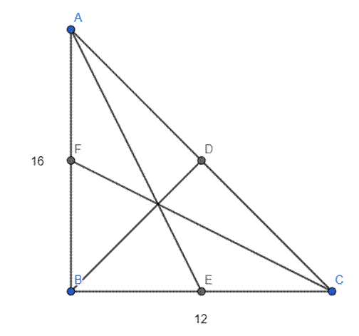 Środek ciężkości trójkąta to miejsce przecięcia się środkowych. Środkowe przecinają się w środku ciężkości trójkąta, który dzieli środkową na dwa odcinki pozostając ze sobą w stosunku 2 : 1. Najpierw skorzystaj z twierdzenia Pitagorasa w trójkącie ABC, aby obliczyć długość odcinka AC. |BD| jest równa połowie odległości |AC| i długości promienia okręgu opisanego na tym trójkącie. Odległość środka ciężkości tego trójkąta od wierzchołka kąta prostego jest równa