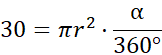 Pole wycinka koła jest równe P, a łuk tego wycinka ma długość L. W tym zadaniu musisz obliczyć promień koła, jeśli: P = 30 cm², L = 12 cm.