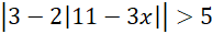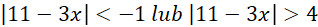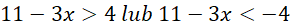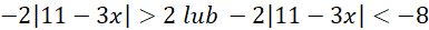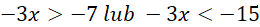 Nierówność po lewej stronie jest sprzeczna, ponieważ wartość bezwzględna nie może być mniejsza od liczby ujemnej. Jako że mamy obliczyć sumę dwóch wyliczonych nierówności, to po prostu pomijamy ją w dalszej części zadania. Rozłóżmy więc jedynie nierówność po prawej na kolejne przypadki: