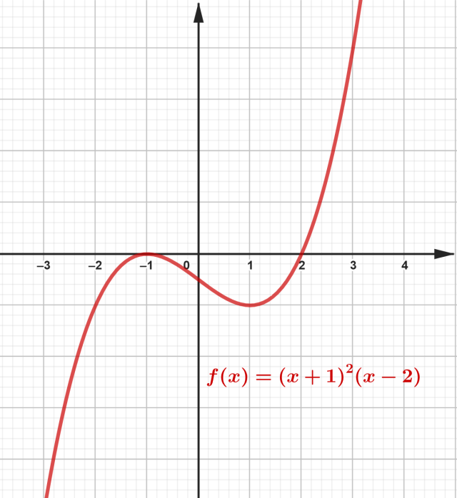 3. Prowadź funkcję tak, aby przecinała oś w miejscach, w których posiada ona pierwiastki, pamiętając, że gdy krotność pierwiastki jest nieparzysta, to przecinamy oś, a gdy jest parzysta – odbijamy wykres od osi.