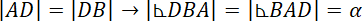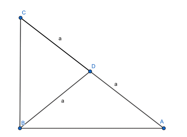 Skorzystaj z faktów, że trójkąty BDA i CDB są równoramienne. Suma katów w trójkącie BDA to