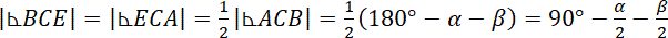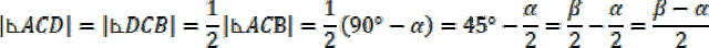 Wykaż, że kąt między wysokością poprowadzoną z wierzchołka C i dwusieczną kąta przy wierzchołku C jest równy