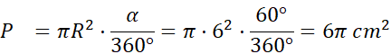W wycinek koła o promieniu 6 cm wpisano okrąg o promieniu 2 cm (zobacz rysunek obok). W tym zadaniu musisz obliczyć pole wycinka koła.