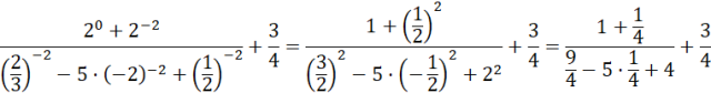 Oblicz podane wyrażenie pamiętając o kolejności wykonywania działań (potęgowanie wykonujemy przed mnożeniem) i zasadach działań na ułamkach. Przy ujemnych potęgach użyj wzoru:
